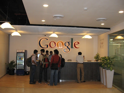 The meet was scheduled for 24th of July 11 am - 3 pm. I reached google R & D little bit late around 15 mins. It was not my mistake, the Bangalore traffic jams are fun than codejam. It was situated in 4th floor of RMZ Infinity Park, near old Madras road. On the moment I reached there I could have the feel of google. Everything was arranged more fancy. At the reception, there was google KIOSK, web application for collecting the vistor details. They gave me a sticker printed with my name and the host name. Our host was Aishwarya. I went to the conference hall and already some talk by some googler (HR Manager) was going on..They were trying show us What google were in 1997 and and now in 2008. Spoke about the greatest freedom that googlers have at their office. I felt like a hobbyist kinda approach at the office. More unofficial mannerisms. So employees always get involved with their passions and enjoy every moment.