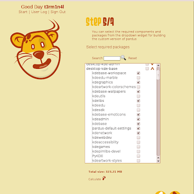 I have significant coding progress with Pardusman, the custom distro building application which I am involved with coding. web-pardusman comes with a wizard interface, where user can customise each and every thing using the wizard steps. Now, the web-pardusman can build custom distro images with following specifications given by the user.