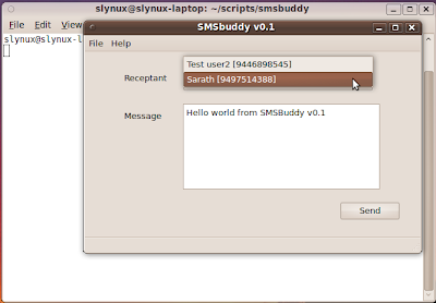 UPDATE1:</strong> SMSBuddy got a new icon. Thanks to Hiran for the icon. Please note that I have updated the download url. Please the URL above. Now the icon appears in Applications -> Accessories menu and in the desktop. Have fun.